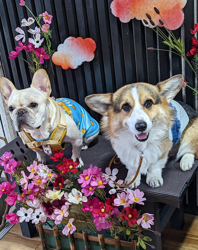 - ワンちゃんのお食事はございませんが、ワンちゃんにはお水と米粉ワッフルのおやつでおもてなしいたします。